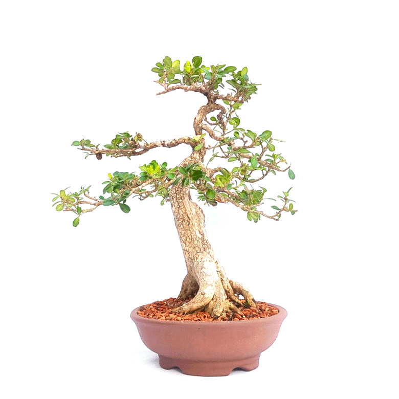 É um arbusto ornamental de médio porte e folhas pequenas arredondadas e brilhantes. Pode produzir pequenas flores amarelas na primavera e pequenos frutos. Seu tronco tem aspecto rugoso mesmo em plantas jovens, dando aparência de envelhecimento ao bonsai, porém seu crescimento é lento, sendo muito comum a utilização de plantas de jardins (cercas vivas) como material para bonsai.