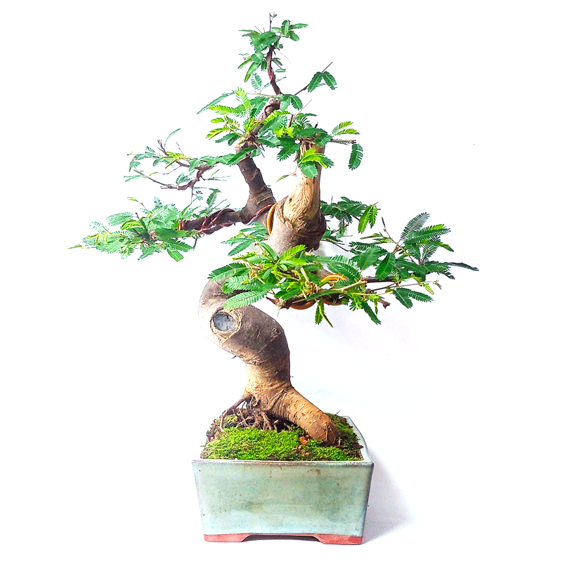 Arbusto nativo muito apreciado como Bonsai. Possui tronco com coloração escura e casca com aspecto envelhecido. Folhas pequenas e serrilhadas que se fecham a noite, ou quando sofrem falta de água. As flores são abundantes, na cor branca ou rosa, que antes de se abrir parecem com uma framboesa. Produz uma vagem, que uma vez seca, se abre e libera as sementes, que nascem com muita facilidade.