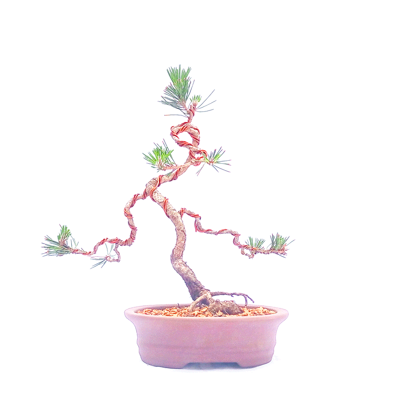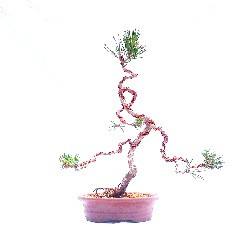 Planta clássica no mundo do bonsai. Possui porte majestoso e muito longeva, vivendo séculos na natureza. Tronco se apresenta rugoso mesmo em plantas jovens, possui folhas (agulhas) em pares, duras e pontiagudas, de coloração verde intensa. Produz pequenas pinhas no inverno que se abrem e liberam as sementes que germinam facilmente.