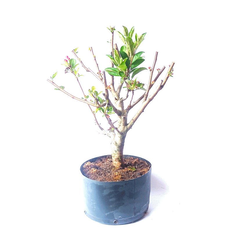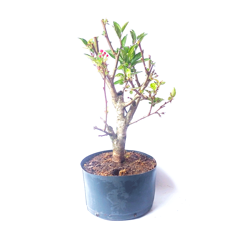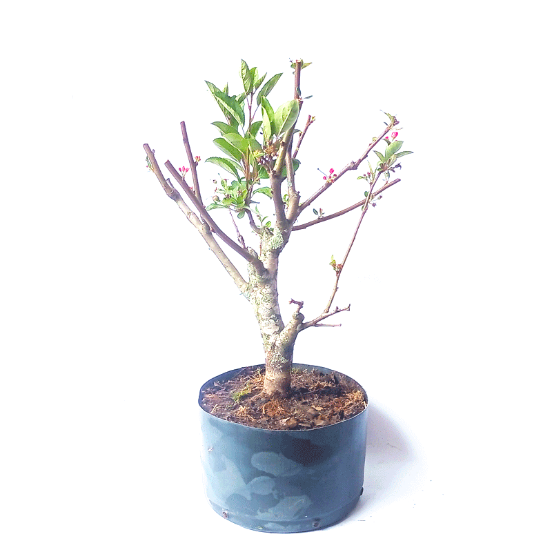 Árvore de médio porte, tronco de coloração cinza claro, folhas ovaladas de cor verde vivo. A floração de cor branca / rosa ocorre antes da abertura das primeiras folhas antes do início da primavera. Como bonsai frutifica facilmente e seus frutos são comestíveis e de coloração vermelha. É de clima frio, por isso seu cultivo é mais recomendado para o sul e no sudeste.