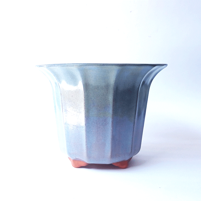 Apresentação: Vaso de cerâmica para estilo Cascata (Kengai) esmaltado cor Azul;