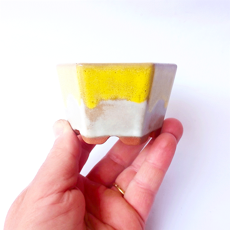 Vaso Hexagonal Esmaltado Cor Amarelo e Branco 7 x 7 x 5 cm