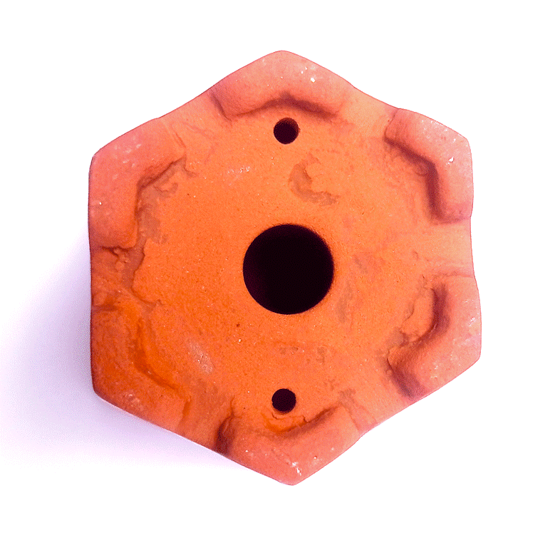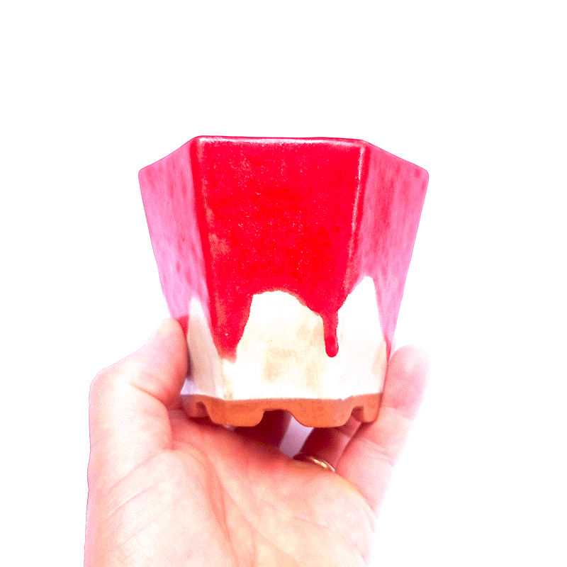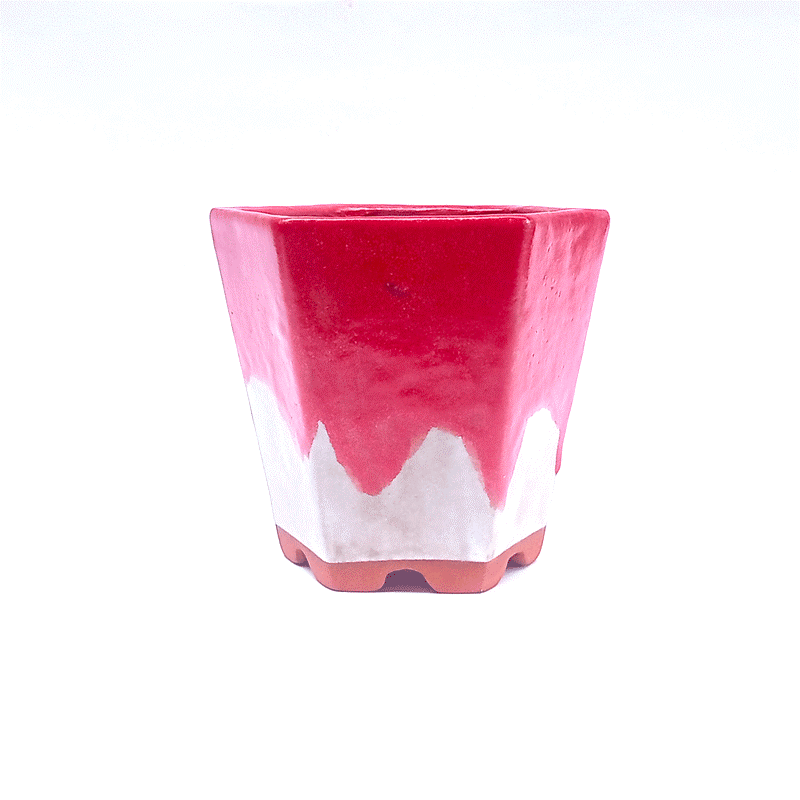 Apresentação: Vaso hexagonal em cerâmica esmaltado cor Vermelho e Branco;