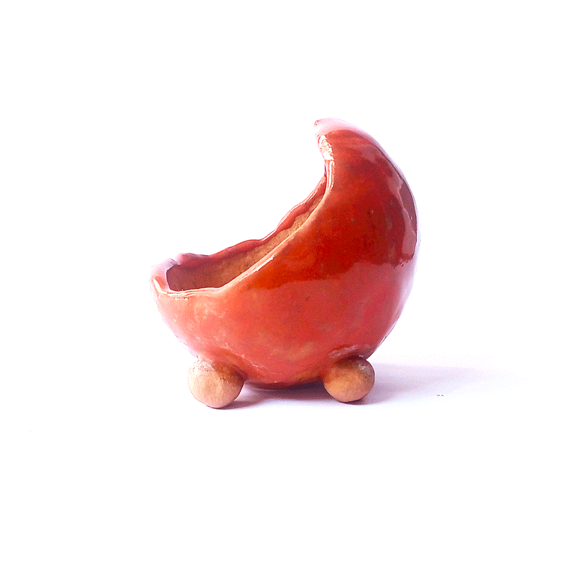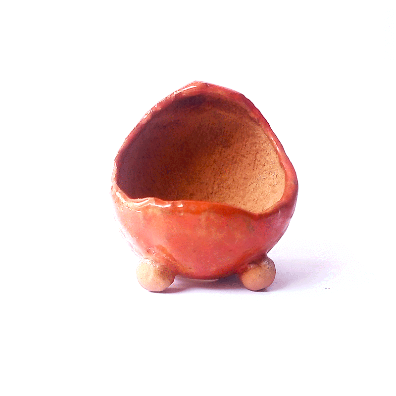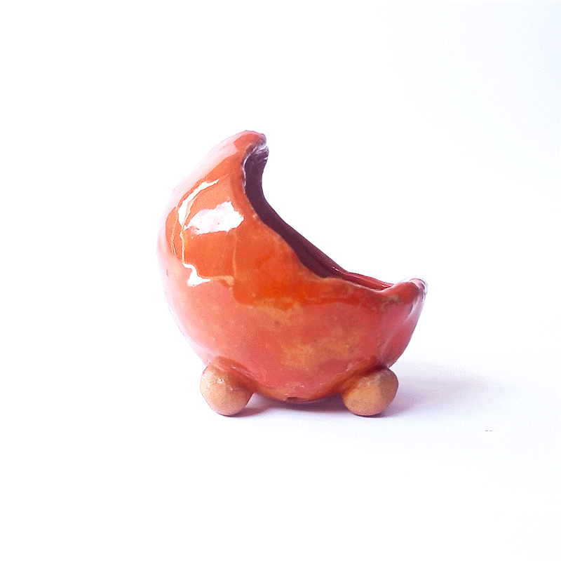 Apresentação: Vaso Kurama Orgânico  – Fabricação própria BonsaiFox – Tamanho pequeno – esmaltado cor Laranja;