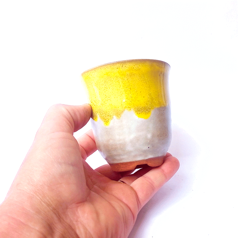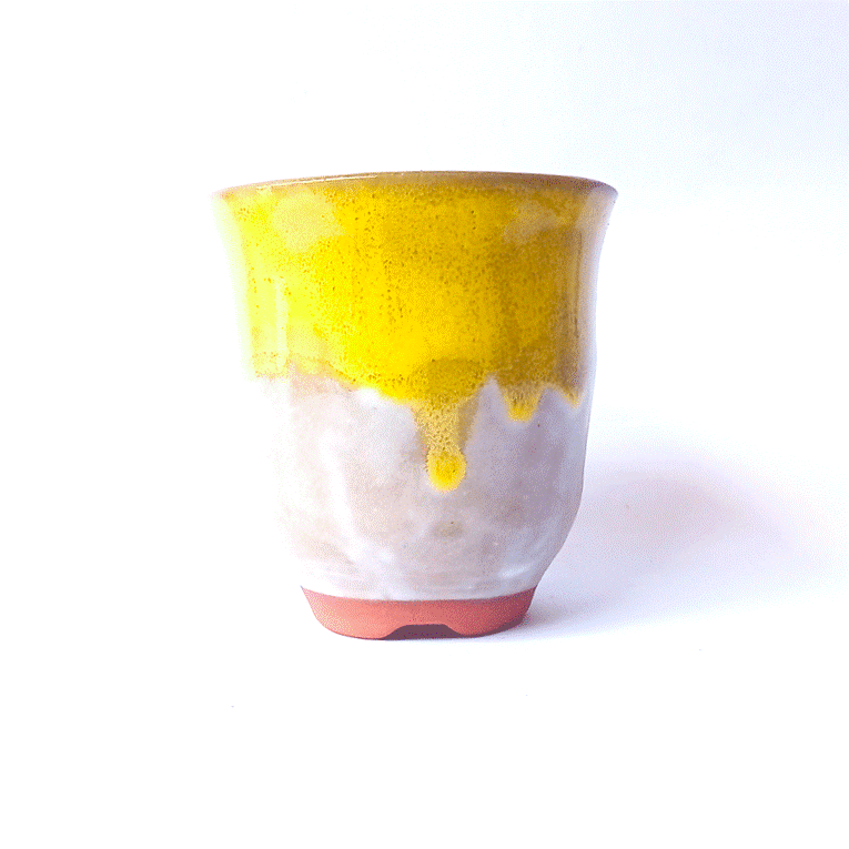 Apresentação: Vaso Redondo Esmaltado Cor Amarelo e Branco;