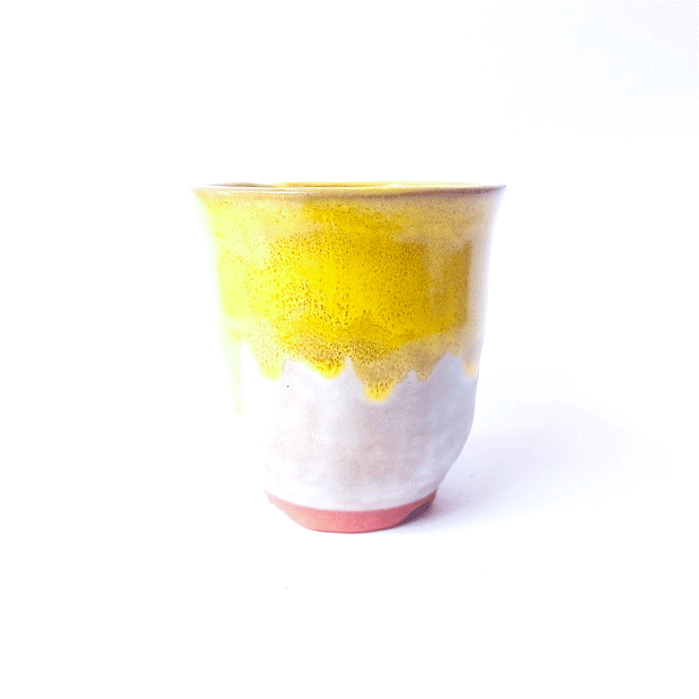 Vaso Redondo Esmaltado Cor Amarelo e Branco