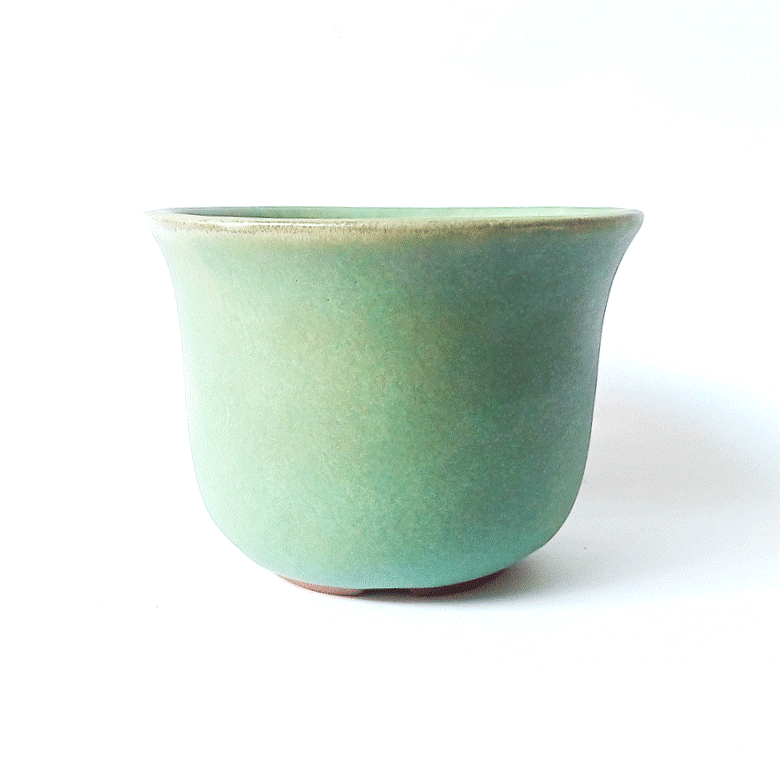 Apresentação: Vaso de cerâmica para estilo Cascata (Kengai) esmaltado cor Verde;